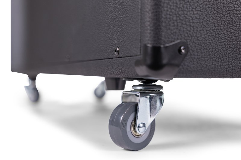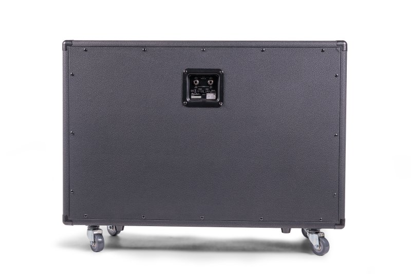 2 x12 angled baffle front loaded straight speaker cabinet with heavy duty steel grill and tuned center port. Casters included.