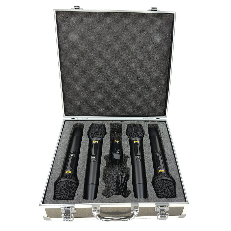 The CAD Audio WX54 offers true wireless freedom for your next presentation or performance. With an operating distance of 164’ (50m) and battery life up to 8 hours, the WX54 offers the perfect wireless solution for any application. The four handheld transmitters feature a rugged build that can withstand the most demanding environments, and the QuickMic™ receiver connects easily to a mixing console, portable speaker, or karaoke machine. Each transmitter auto-connects to the receiver for easy plug-and-play use. Up to 5 systems can be used at one time for larger events. Includes rugged aluminum carry case. |