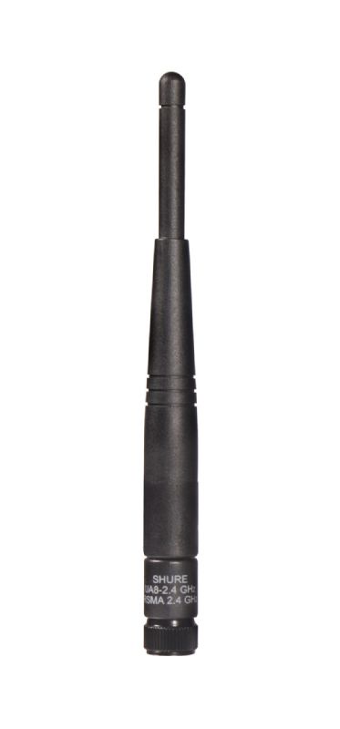 The 2.4 GHz UA8 1/2 Wave Omnidirectional Receiver Antenna from Shure is for connecting to Shure Wireless receivers. It is compatible with the GLX-D digital Wireless system and features 0, 45, and 90° positioning for increased stability. The UA8 antenna is