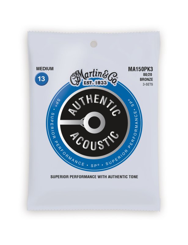 Martin MA150 Authentic Acoustic SP 80/20 Bronze Medium Guitar Strings. 13-56 (3 Pack)