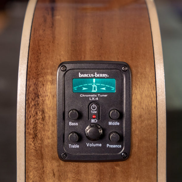 Solid Spruce top, Acacia back/sides, abalone & turquoise inlay and Barcus Berry LX4 Preamp.