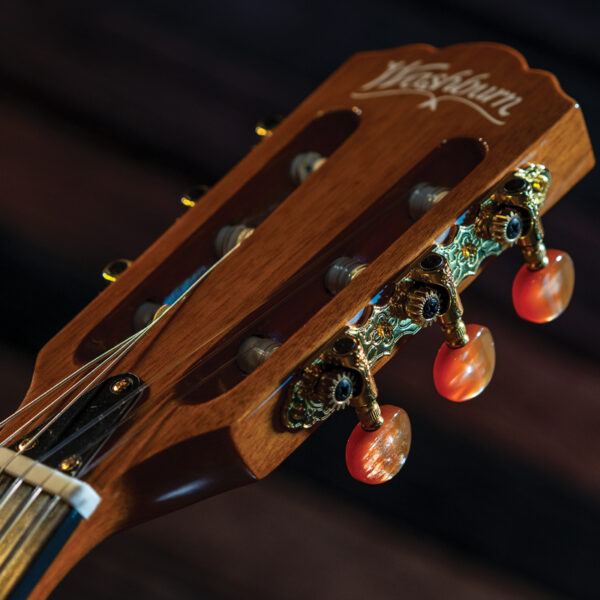 Nylon stringed classical guitars have an ageless appeal regardless of the genre of music you play. Classical players require a larger string spacing to accommodate their precise finger style playing. If you're a steel string player though, you may not be accustomed to playing the wider width, so we've developed the EACT42S with its steel string-like spacing to accommodate you. The EACT42S features a cutaway for upper fret access, a feedback reducing thinline body and premium electronics combined with the smooth, full tone of nylon strings to make it easier to get up to speed producing nylon stringed tones in any performance situation. Washburn designed the Festival series to address the needs of the performing musician and it has succeeded for over 25 years. The Festival series was the standard acoustic/electric guitar seen on MTV's "Unplugged" series and has since become one of the best selling and most copied guitars on the market. A large body teamed up with quality electronics, hardware, and fine woods allows the pristine, crystaline highs to blend perfectly with a full, well rounded low end.