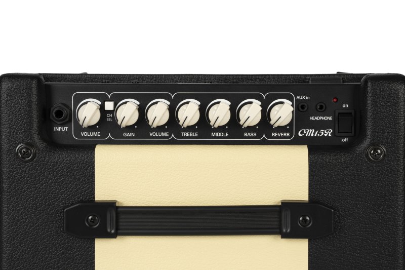 -The CM15R offers a wide range of clean and overdrive sounds with a sparkling clean channel and a rich-sounding overdrive channel with independent gain and volume controls and a 3-band EQ with the treble, middle and bass knobs specifically tailored to the sonic range of the electric guitar. The gain control provides a wide range of overdrive from bluesy crunch to over-the-top modern distortion. The push-button channel selector allows you to switch from the clean channel to overdrive/distortion channel and back easily, making the CM15R a very versatile amp in its class.