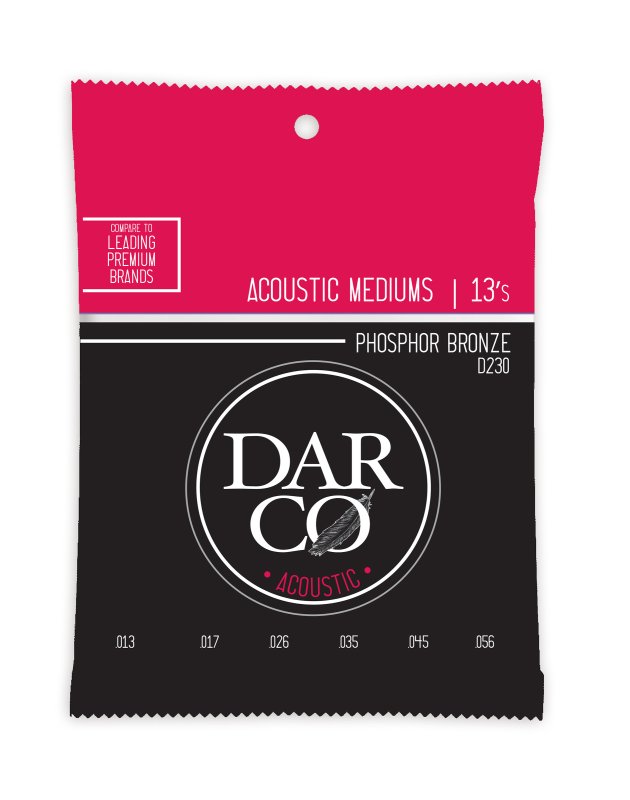 The Darco line of acoustic strings promises quality, tone, and value in every pack. They are designed for the pros and priced for the working musician so every guitar player can afford to change their strings as often as needed to keep their guitar sounding new all the time. Darco acoustic strings are meticulously constructed using a tin-plated steel core wire and high quality wrap wire. Darco offers guitar players that pre-gig-peace-of-mind or heading-to-the-studio fresh set string change. Play more. Pay Less.