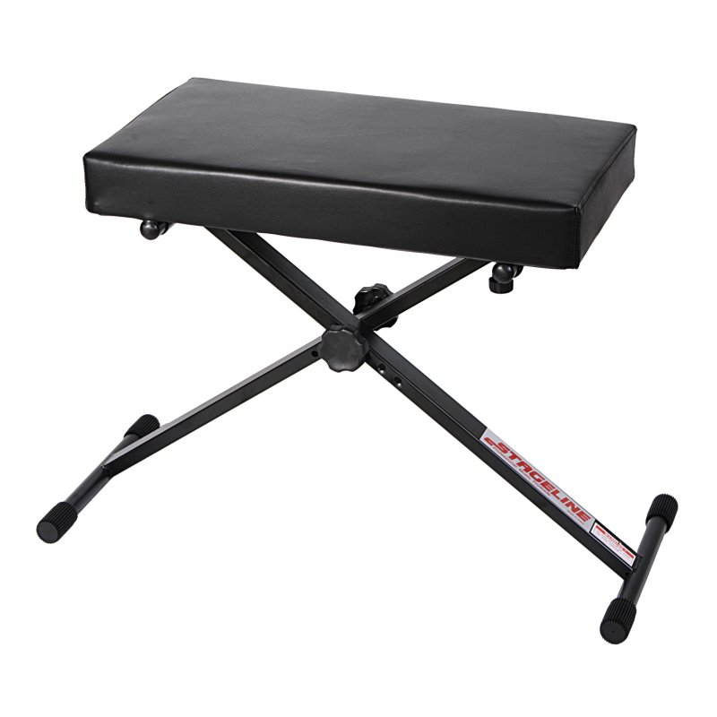 X-type keyboard bench. Heavily padded for maximum comfort. Four adjustable height levels. Easy to set up. Height 20.875 - 26 . Seat 12.5 x 23.75.