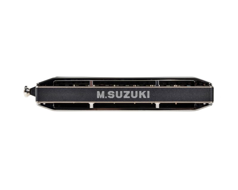 Weight is attached to Sirius in order to add stiffness and mass inside the main body. Harmonicas contains many harmonics, and these harmonics form the bright and flowery tone. Depending on the design of reed and the material and design of body, these harmonics change and it makes the sounds unique to each model. Harmonica bodies with low rigidity like plastic are characterized by a light and bright tone emphasizing middle to high range notes by the body vibrating. Furthermore this bright tone is emphasized even more by the shape of the reed. On the other hand, since a body with a high rigidity, like metal, is hard to vibrate, it makes sound without losing the low note range. Sirius is the ultimate standard of Chromatic Harmonica, combining a well-balanced sound that is thick to the core. Suzuki's phosphor bronze reeds use a special phosphor bronze. A newly designed reed for Fabulous draws out the performance of this material to the utmost limit and creates a thick and sticky sound. This reed is optimally designed with the best material and the latest technology in advancing durability. A black chrome-plated cover finished in a matt gives a smooth feeling, which is combined with silver plated mouthpiece that has antimicrobial effect. The clearance (gap) between the mouthpiece and slide greatly affects the performance of the instrument even with a slight difference in accuracy. Suzuki's chromatic mouthpiece realizes slide action with little air leakage by highly accurate machining. Slide action that is suitable for each model