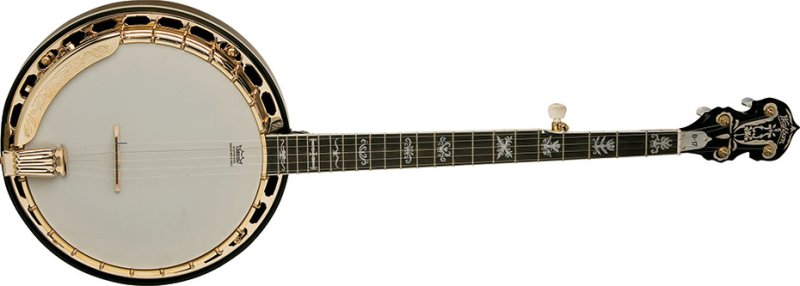 Flame Maple resonator and maple rim, one piece flange, 11" diecast tension hoop, Bell Brass tone ring, Clamshell tailpiece, engraved gold armrest, all 5 geared Planetary tuners and separate coordinator rods.Â