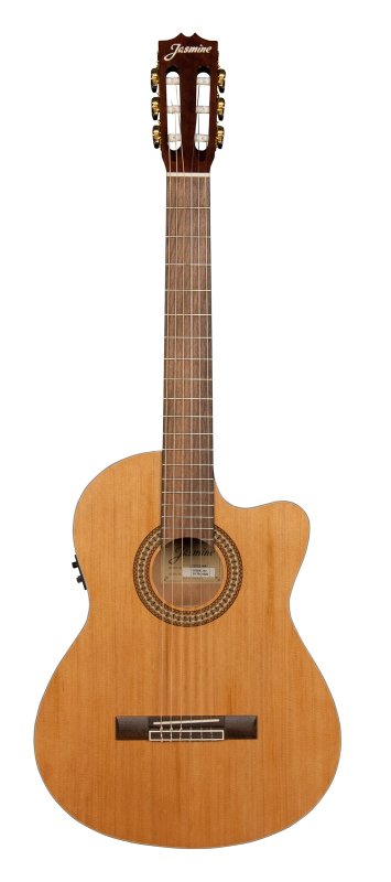 For players seeking full, rich tone, the JC-27CE features a select solid-cedar top with Jasmine's Advanced Classical Bracing, and sapele back and sides. The slim neck and full 25 1/2" scale length provide comfortable feel and excellent playability, and the soft Venetian cutaway gives you unrestricted access to the highest registers of the fingerboard. The onboard Fishman Isys III preamp system offers a built-in digital tuner and three-band EQ for Clear, natural sound and rock-solid amplified performance.