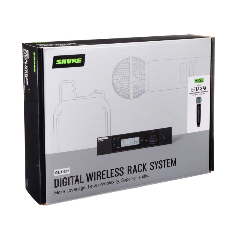 Featuring the industry standard BETA 87A vocal microphone, the half-rack GLXD24+/B87A Dual Band Vocal System delivers superior, transparent digital audio.