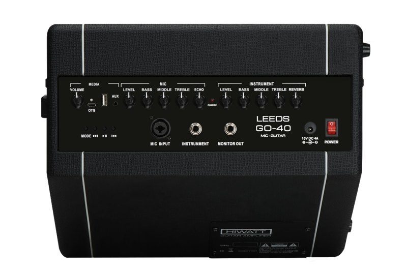 inputs: 2 x 1/4" Unpowered Mic Input, 1/4" Guitar Input, 3.5mm AUX Input