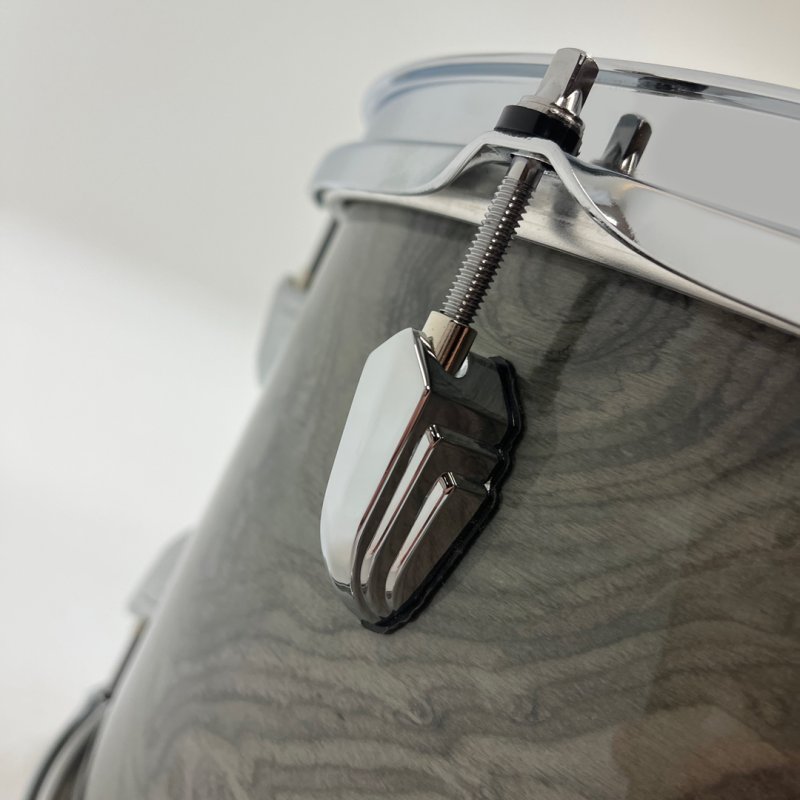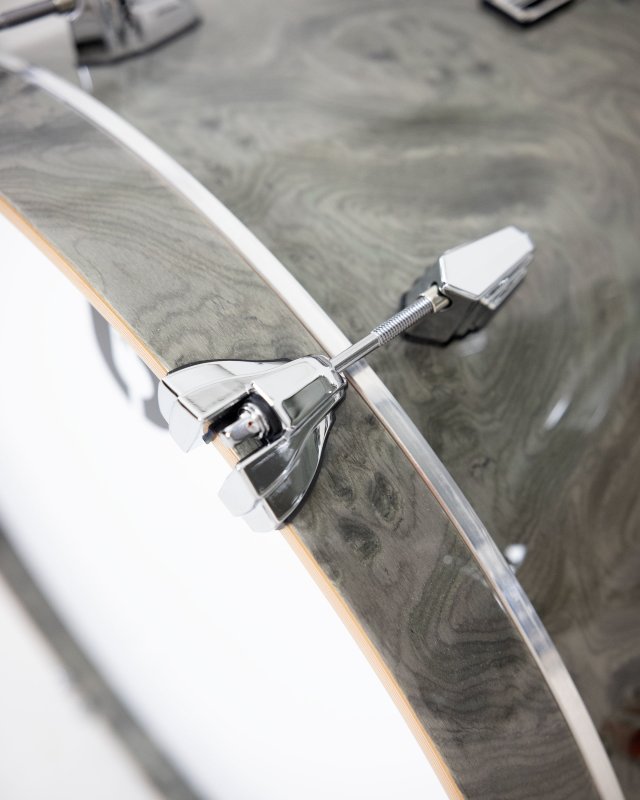 Palladium Hardware - Easily identifiable, Legend Series is distinguished by the small, single Art-Deco inspired Palladium lug on both toms and bass drums. The stylish brackets are fixed to the shells by a bespoke engineered isolation system which ensures greater resonance from the drum whilst maintaining dependable positioning. Rock-solid stability is assured by the Palladium tom brackets on both rack and floor toms. The Art-Deco aesthetic of the Palladium bass drum claw is subtly enhanced by a black thermoplastic elastomer (TPE) gasket which gives added protection to the surface of the Legend Series bass drum hoops.