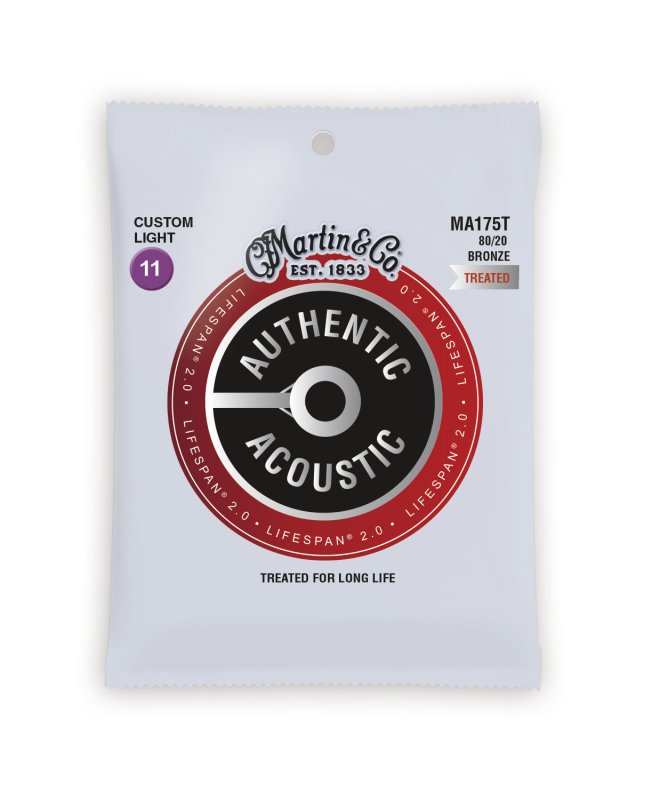Martin's next generation Lifespan 2.0 strings are engineered using a patented technology only available from Martin. This technology was developed to protect the core wire and the wrap wire to prevent corrosion without compromising tone the single most important attribute of the guitar strings. Authentic Acoustic Lifespan 2.0 strings look better, sound better, and feel better, providing a smooth playing experience that reduces finger drag. Martin invested two years developing their next generation Lifespan 2.0 strings to ensure they will sound better, longer than any other extended-life string on the market. Martin Authentic Acoustic Lifespan 2.0 strings offer next generation treatment for long life, great playability and feel, and superior reliability with authentic tone.