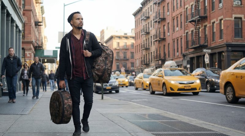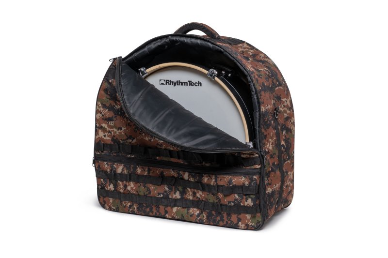 The smaller drum bag clips to the larger bag using D-ring, making the bags an all-in-one backpack.