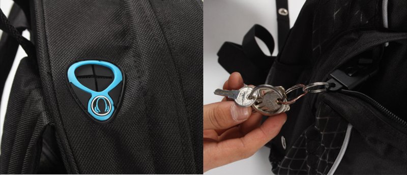 One Velcro side pocket, one mesh side pocket, earphone channel