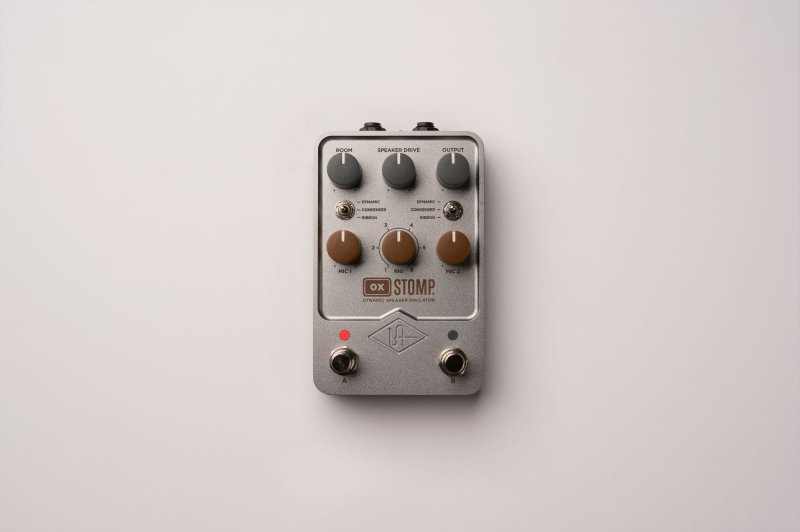 Standing on the shoulders of our award-winning OX Amp Top Box, OX Stomp Dynamic Speaker Emulator pedal gives "amp-in-a-box" modelers a packed pro studio full of authentic-sounding guitar cabinets, mics, room modeling, and studio-quality effects — right at your feet. Going far beyond the one-dimensional captures of Impulse Response systems, only UA’s groundbreaking Dynamic Speaker Modeling convincingly emulates speaker breakup, drive, and cone cry — providing harmonics and sonic complexity indistinguishable from a perfectly studio-miked speaker cabinet. In addition to expertly placed close condenser, dynamic, and ribbon mics on your cabs, OX Stomp is the only effects pedal to offer a complete selection of room mics with Dynamic Room Modeling. This gives you the authentic experience of pushing air while recording your cranked amp in a world-class tracking room. Whether you're using a UAFX amp emulator pedal or other popular amp modelers, multi-effects, or profilers — even your favorite amp's preamp line out — OX Stomp gives you over 100 curated RIG setups, giving you inspiring sounds for any amp type or genre, right out of the box. Beyond mic and speaker cabinet modeling, Ox Stomp also lets you craft stunning guitar sounds with UA effects like genuine 1176 compression, plate reverb, chorus, flange, three delay types, and four-band EQ with high and low-cut filters. With the UAFX Control app, you can easily swap cabs and mics, fine-tune effects, assign RIG presets, and configure footswitches to instantly toggle sounds and/or effects, for a pro studio's worth of tones on your pedalboard. With its generous complement of 22 cabinets and six microphones, OX Stomp gives you nearly any tone imaginable. |
