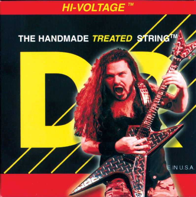 Hi-Voltage Electric Guitar Strings are the signature strings played by the late metal icon Dimebag Darrell. They feature a hexagonal core wire and Nickel-plated steel wrap wire treated with STRINGLIFE, a molecular bonding liquid polymer that protects them from corrosive elements. As Darrell used to say, They're great for everything, from big ol string bends, to huge whammy bar dives, perfect for blood curdling harmonic screams and just straight out heavy chunky riffin
